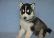 He is dark gray and white. he has blue eyes. he will be current on his shots and deworming....