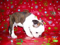 brindle boy is a pet quality boy due to his excessive white on his face. He must be neutered! very sweet and paper trained. Will travel. $750 call kerri 814 591-7829