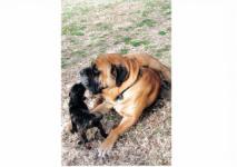 Zeke is a tank and has produced some giant puppies. Well over 200 lbs, huge head, lots of wrinkles....